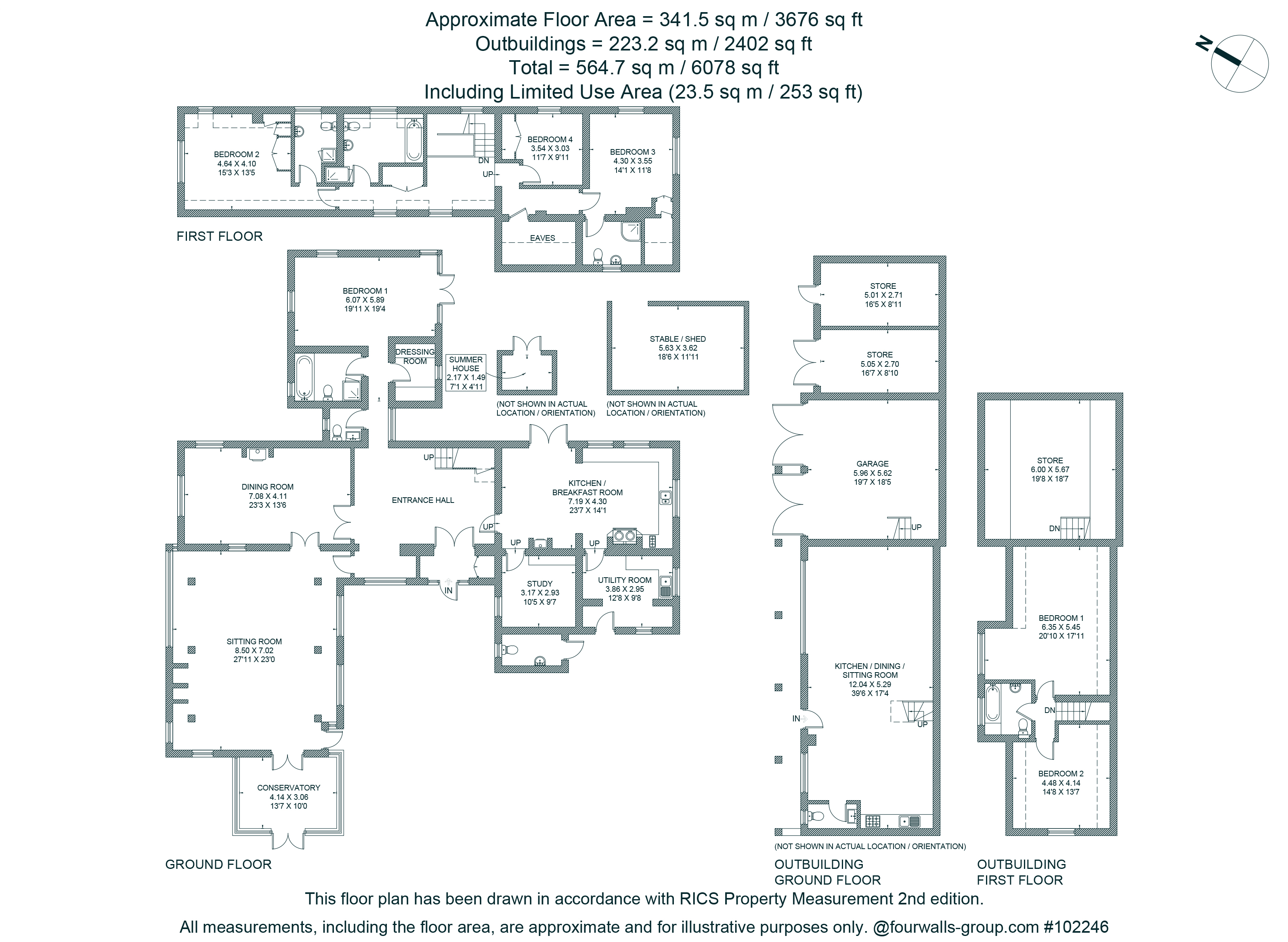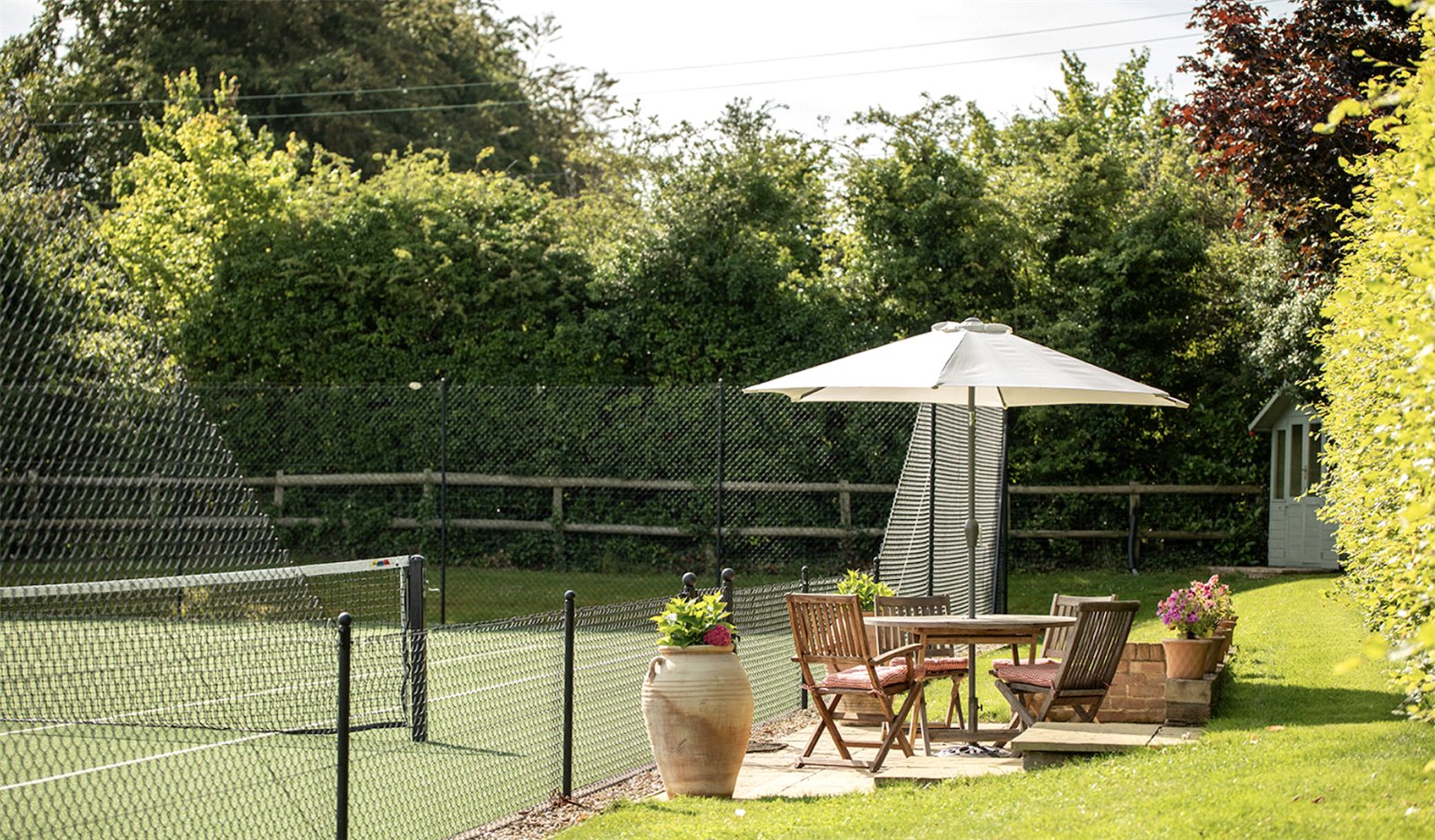 A four bed property with wonderful views, garaging, land, tennis court and a two bed annexe.