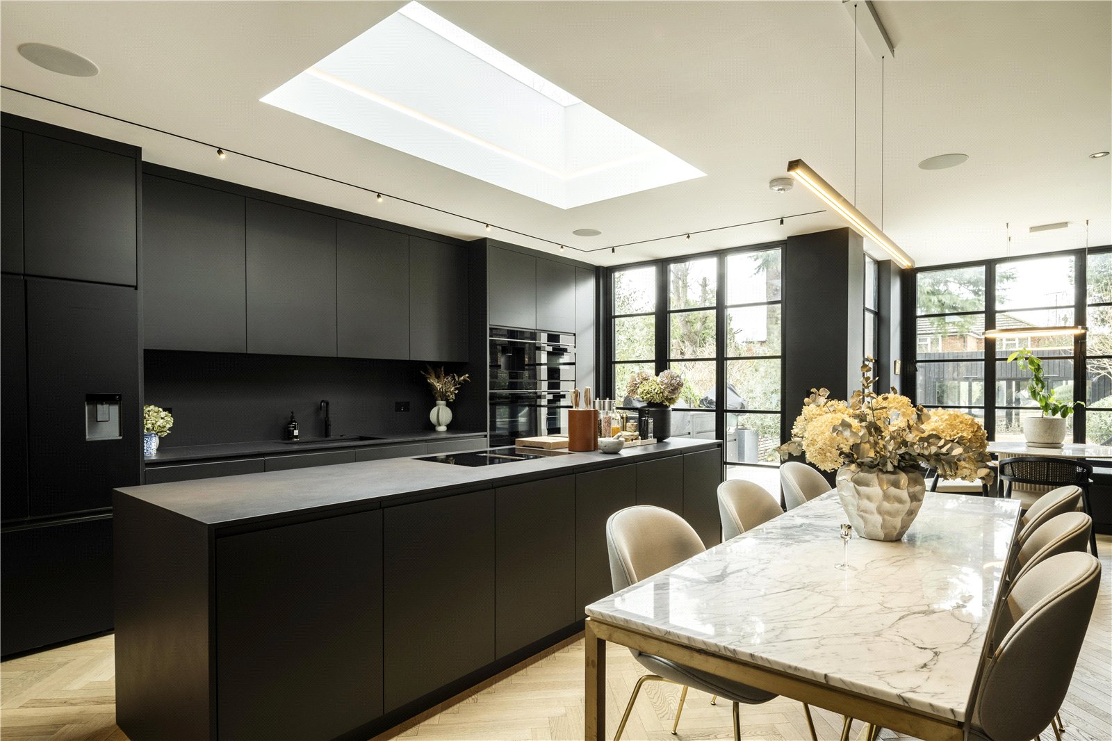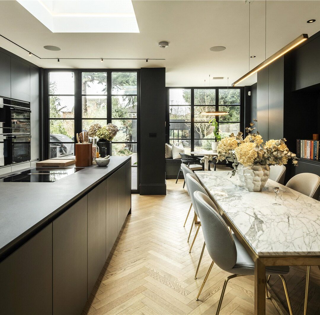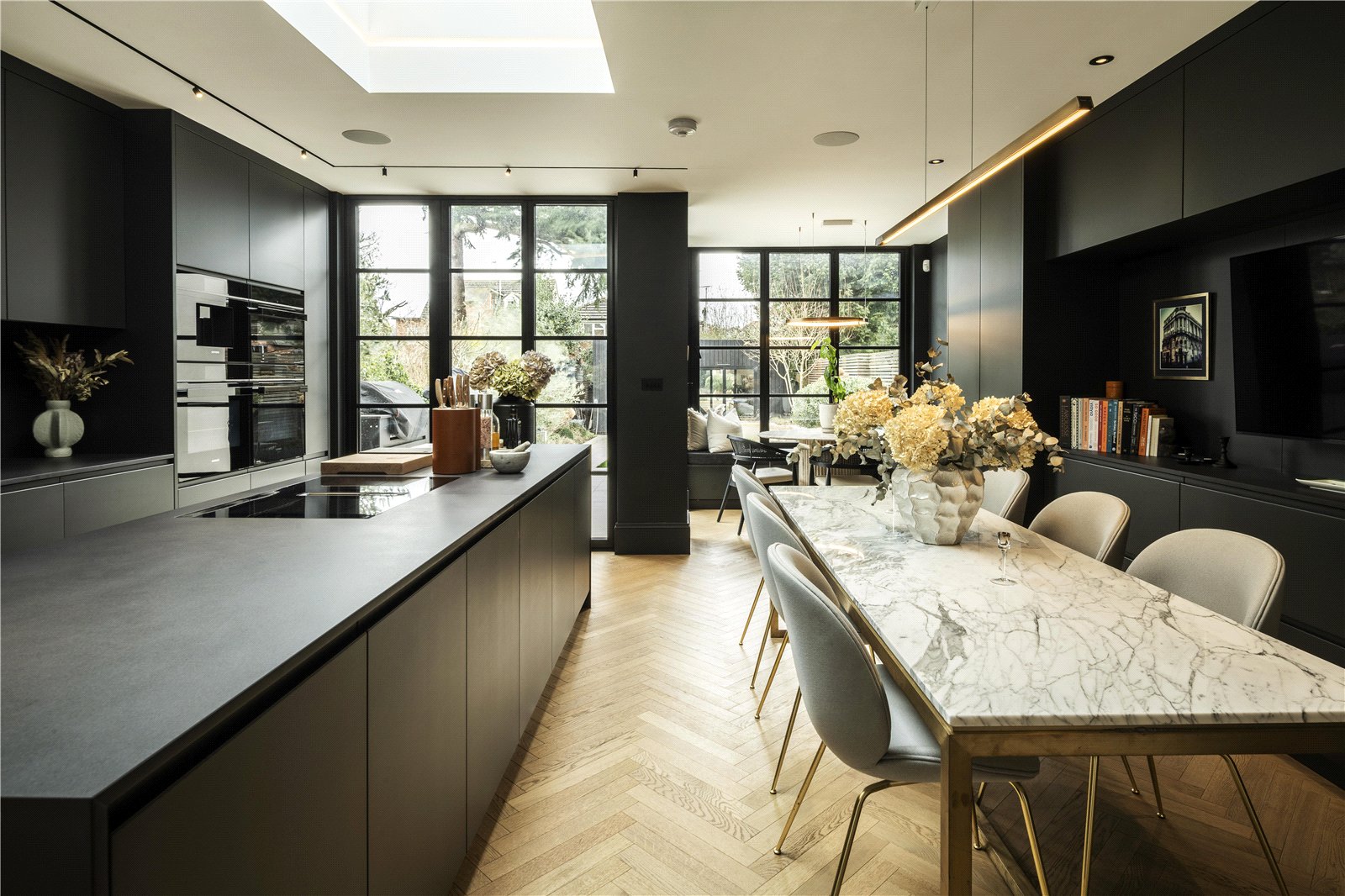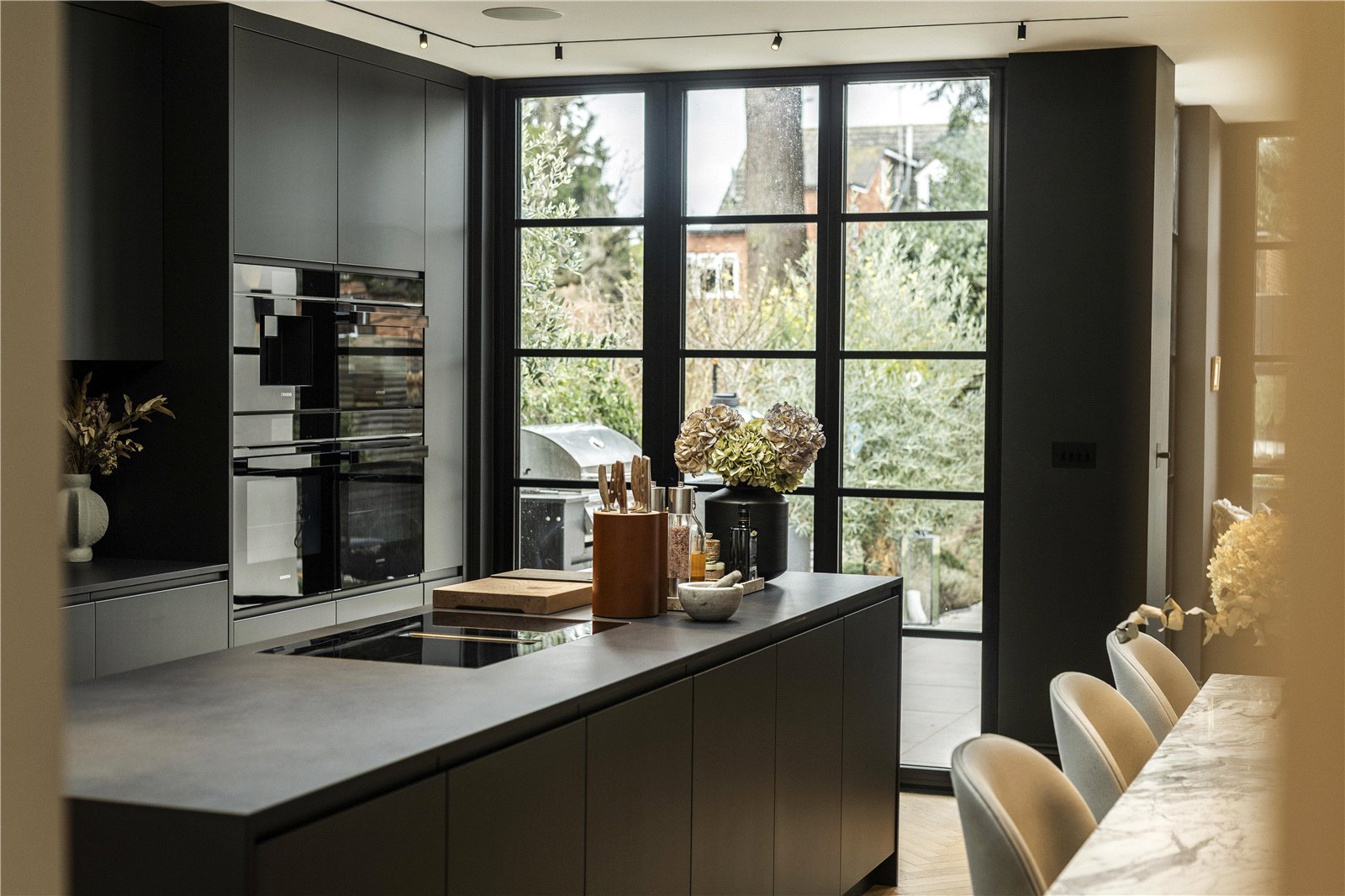 An impeccably refurbished and extended town house with bespoke interiors, elegant reception spaces, a stunning kitchen, principal suite and landscaped garden studio.