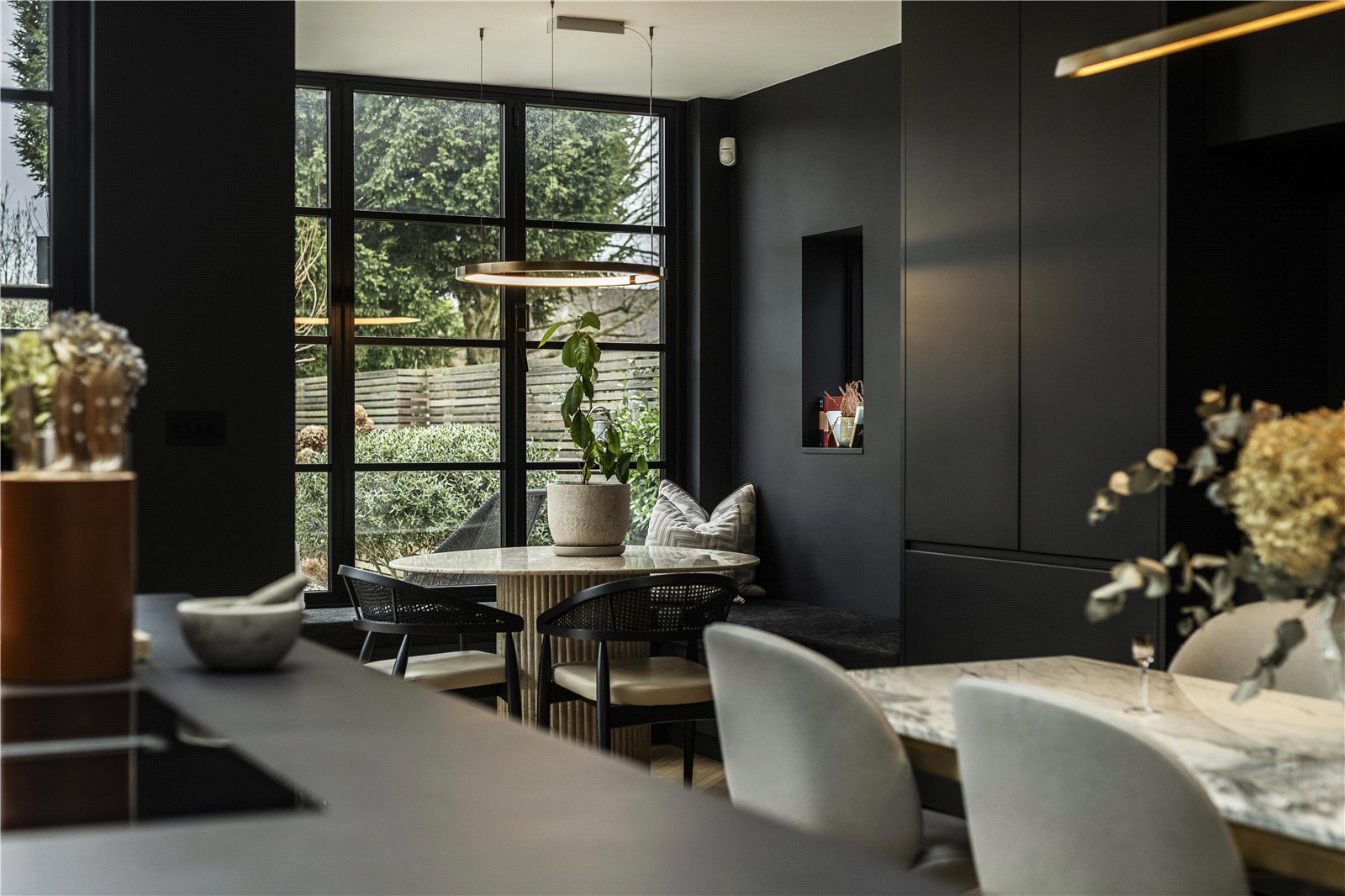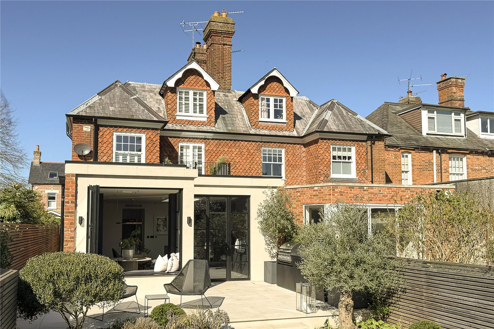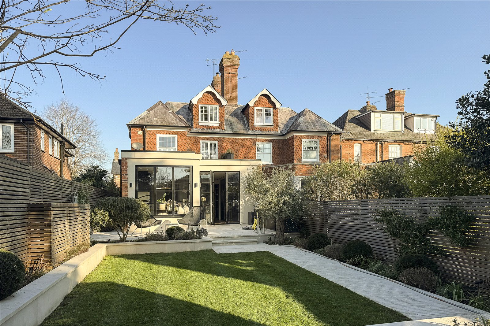 An impeccably refurbished and extended town house with bespoke interiors, elegant reception spaces, a stunning kitchen, principal suite and landscaped garden studio.