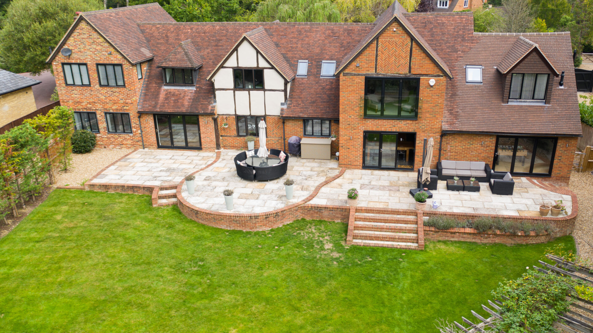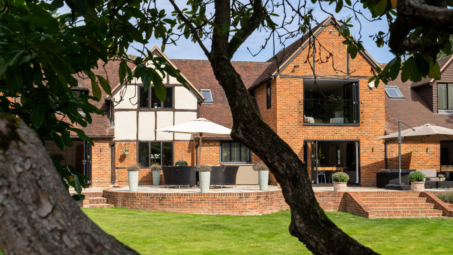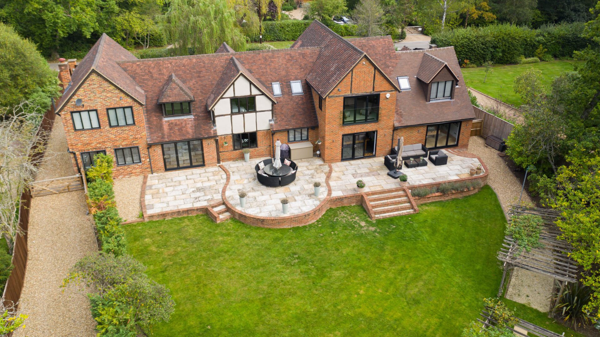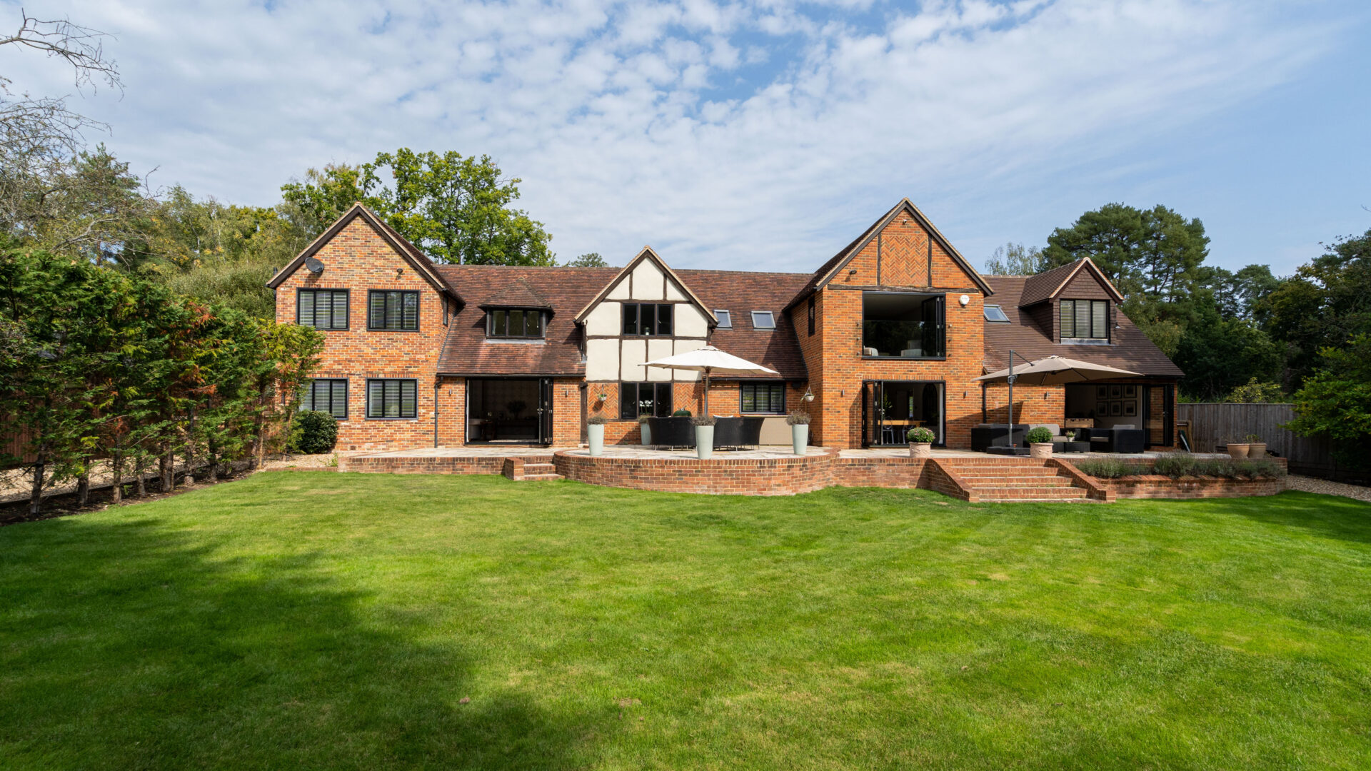 Willow Cottage is an enchanting and characterful home of substantial proportions, situated in one of Ascot’s premium private roads. In recent years the property has been extended and completely renovated by the current owners. The result is a stylish home which is beautifully presented and provides a high degree of flexibility as to how the accommodation can be used. The whole feel of the property is one of sleek modern style, balanced with the character of an older home and filled with vast quantities of natural light. All of the reception rooms to the rear of the property open up on to the south facing garden and large terrace, with bi-fold doors, which accentuate the relaxed nature of bringing the outside space in. The bespoke Anthony Mullen kitchen is a highlight, complete with Miele appliances and a Mercury Range cooker. All of the bedrooms are well proportioned and of particular note is the master bedroom suite, which also has bi-fold doors and a Juliet balcony overlooking the beautiful and mature gardens beneath. The gardens have been expertly designed and provide a high level of privacy and seclusion. There are attractively decked areas, pathways shaded by timber pergolas, specimen plants and shrubs. A superb heated swimming pool with electric cover, sits attractively at the bottom of the garden and is framed by the newly built Lodge, giving this area a tranquil holiday feeling.